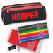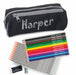 Double Zip Pencil Case with 12 Coloured Pencils and 12 Graphite Pencils with Erasers all embossed with name