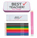 Personalised Pencil Tin with 12 Colouring Pencils & 2 HB Pencils with Erasers - Printed in UK by 'That's My Pencil' Best Teacher