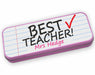 Stylish, high quality pencil tin is printed with name and our Best Teacher design.
